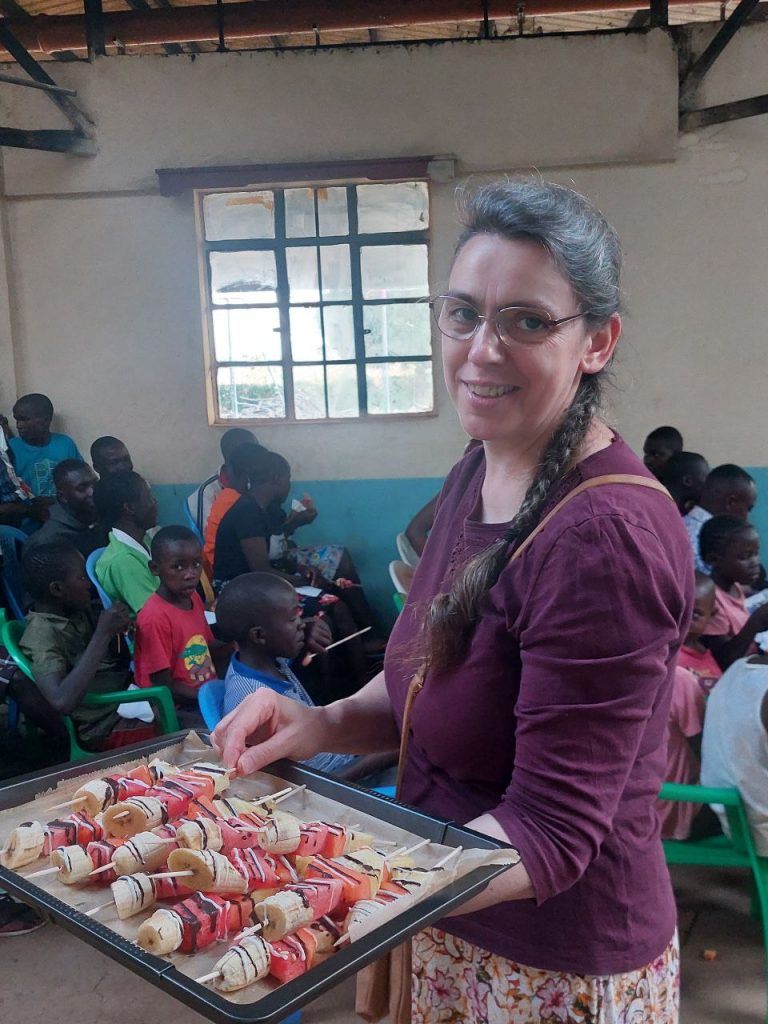 Während unseres Aufenthalts lernte Leah, eine junge Mitarbeiterin des Waisenhauses das Backen mit einem Backofen. Künftig wird sie die Geburtstagskuchen für die Feier selbst backen – eine schöne und wertvolle Bereicherung für die Kinder.