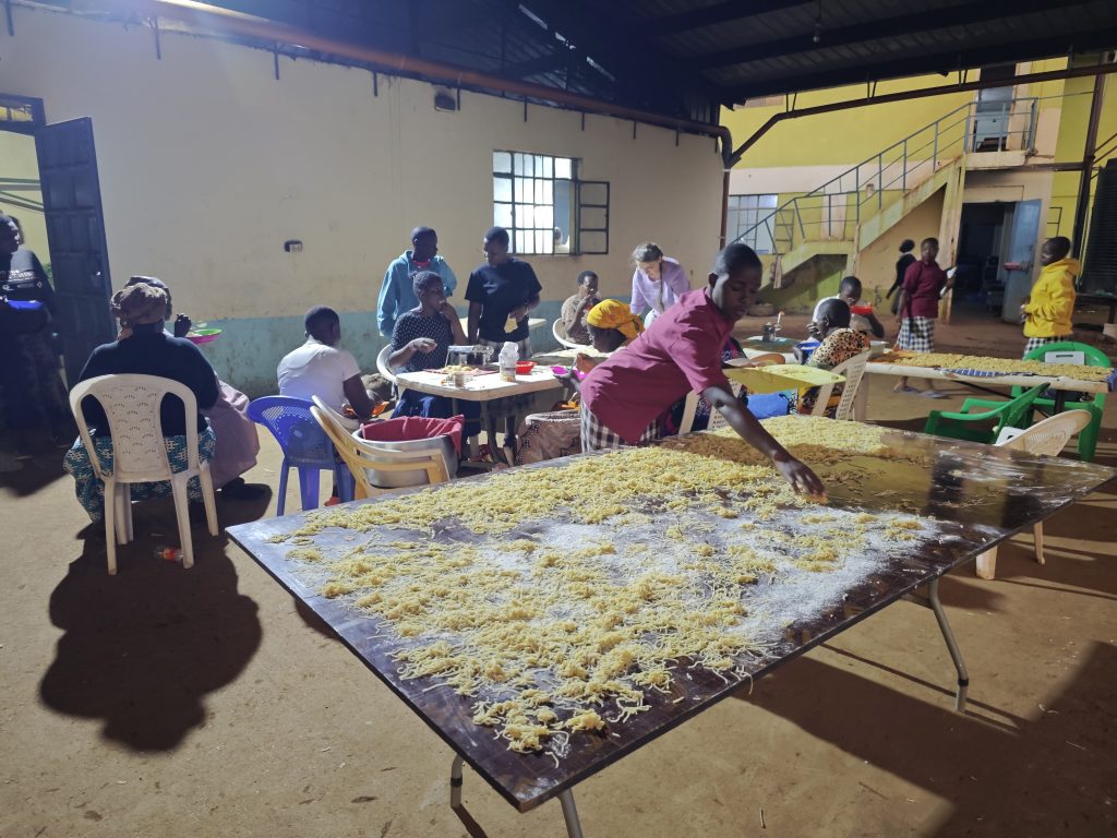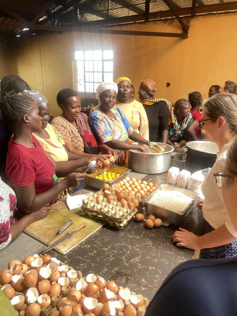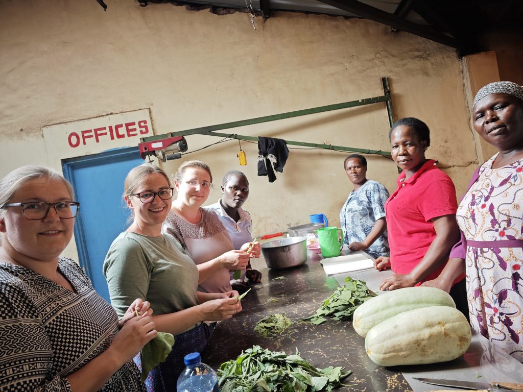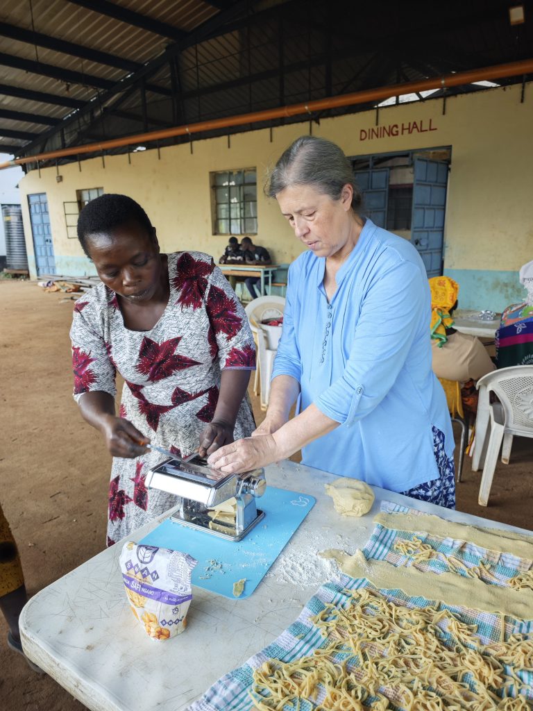 An zwei Nachmittagen wurde gemeinsam mit den Frauen der Gemeinde gekocht. Die deutschen Frauen zeigten, wie man Hühnersuppe mit selbstgemachten Nudeln zubereitet. Viele Frauen halfen begeistert bei der Teigherstellung, und auch zahlreiche Kinder machten beim Nudelnformen mit. Die Freude über die fertige Suppe war groß.
