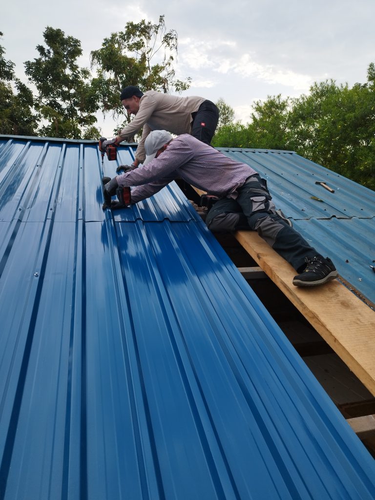 Die Dächer des Haupthauses sowie der Schlafräume der Mädchen und Jungen waren in die Jahre gekommen und boten kaum noch ausreichenden Schutz vor Regen und Witterung. Daher wurden sie im Auftrag von Leben ist mehr e.V. von einheimischen Metallwerkern vollständig erneuert.